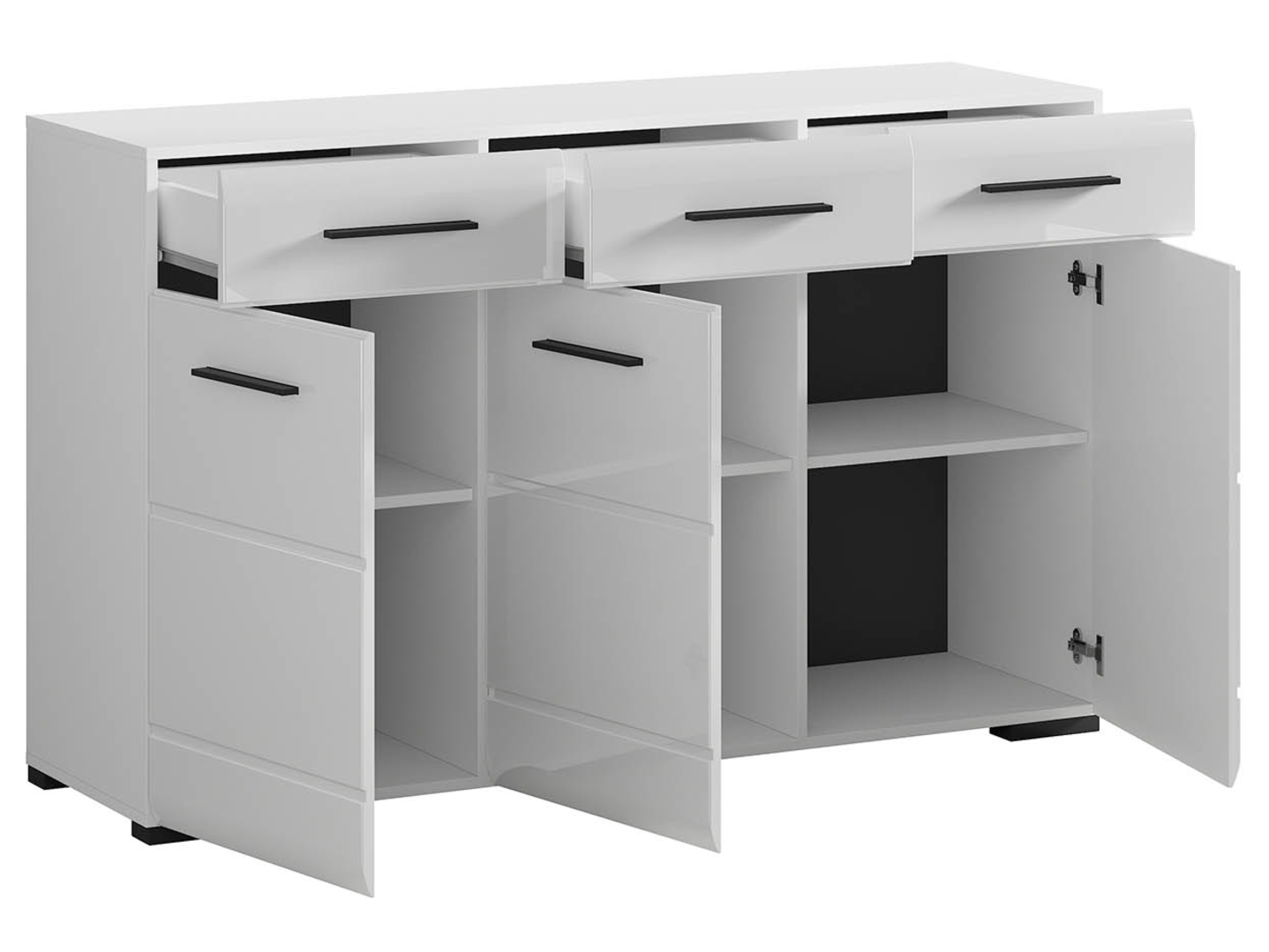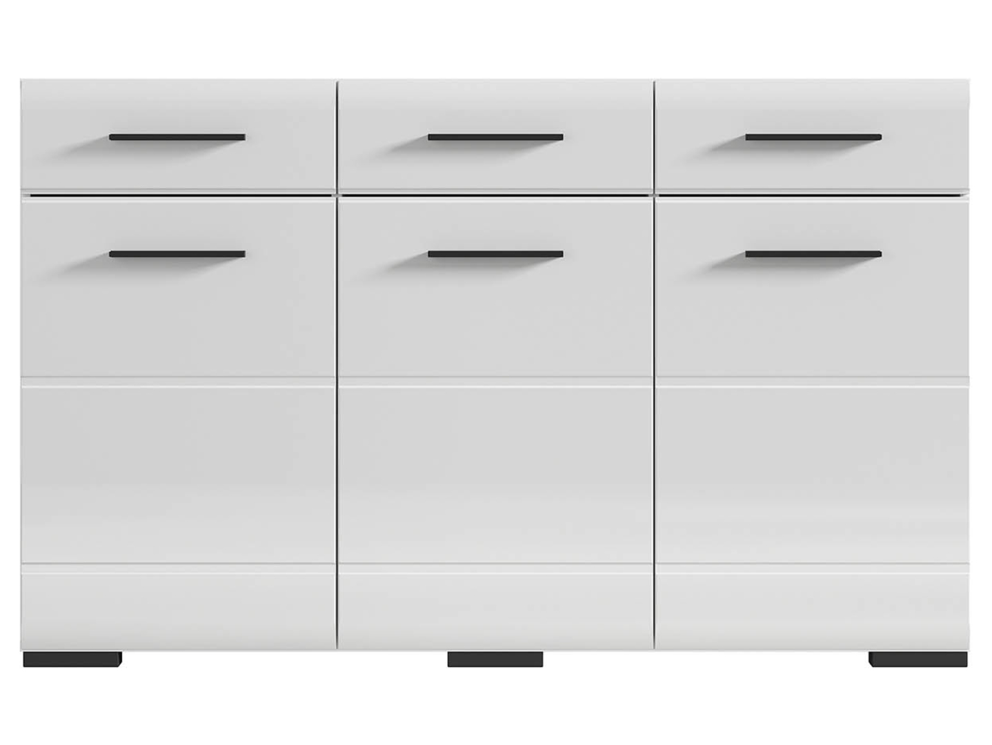 Dressoir Fever is een modern dressoir bestaande uit drie laden met daaronder drie deuren voorzien van hoogglans zwarte handgrepen.