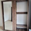 Kledingkast Vasto 180 Monastery is een moderne kledingkast van 180 cm breed, uitgevoerd met twee grote schuifdeuren met daarop een spiegel een zilverkleurige handgrepen.